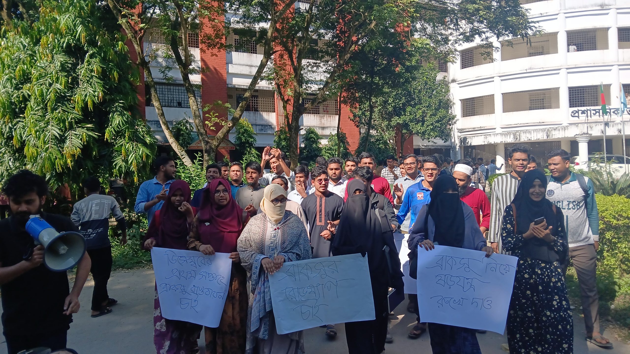 ব্রাকসু নির্বাচন : তফসিল ঘোষণার দাবিতে প্রশাসনিক ভবনে শিক্ষার্থীদের অবস্থান কর্মসূচি